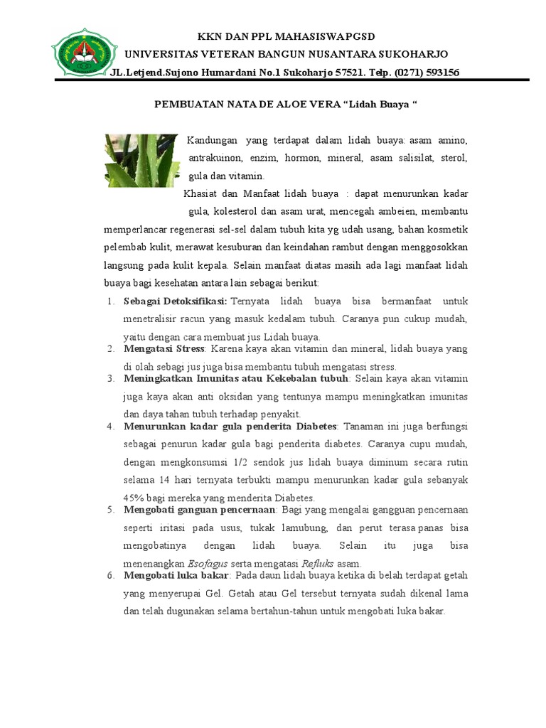 Nata de aloe vera doddy lazuardi, gita larasanti, latifa karunia, michael g. Dari hasil penelitian eksperimental yang kami lakukan bahwa daging lidah buaya dapat dijadikan nata de aloe vera dengan kandungan yang beragam seperti karbohidrat, vitamin a,kalsium, dan zat besi. Salah satunya adalah membuat nata de aloe vera.