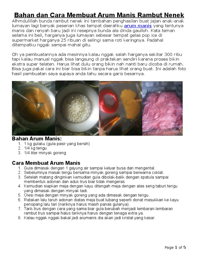 Bahan Dan Cara Membuat Arum Manis Rambut Nenek Pdf